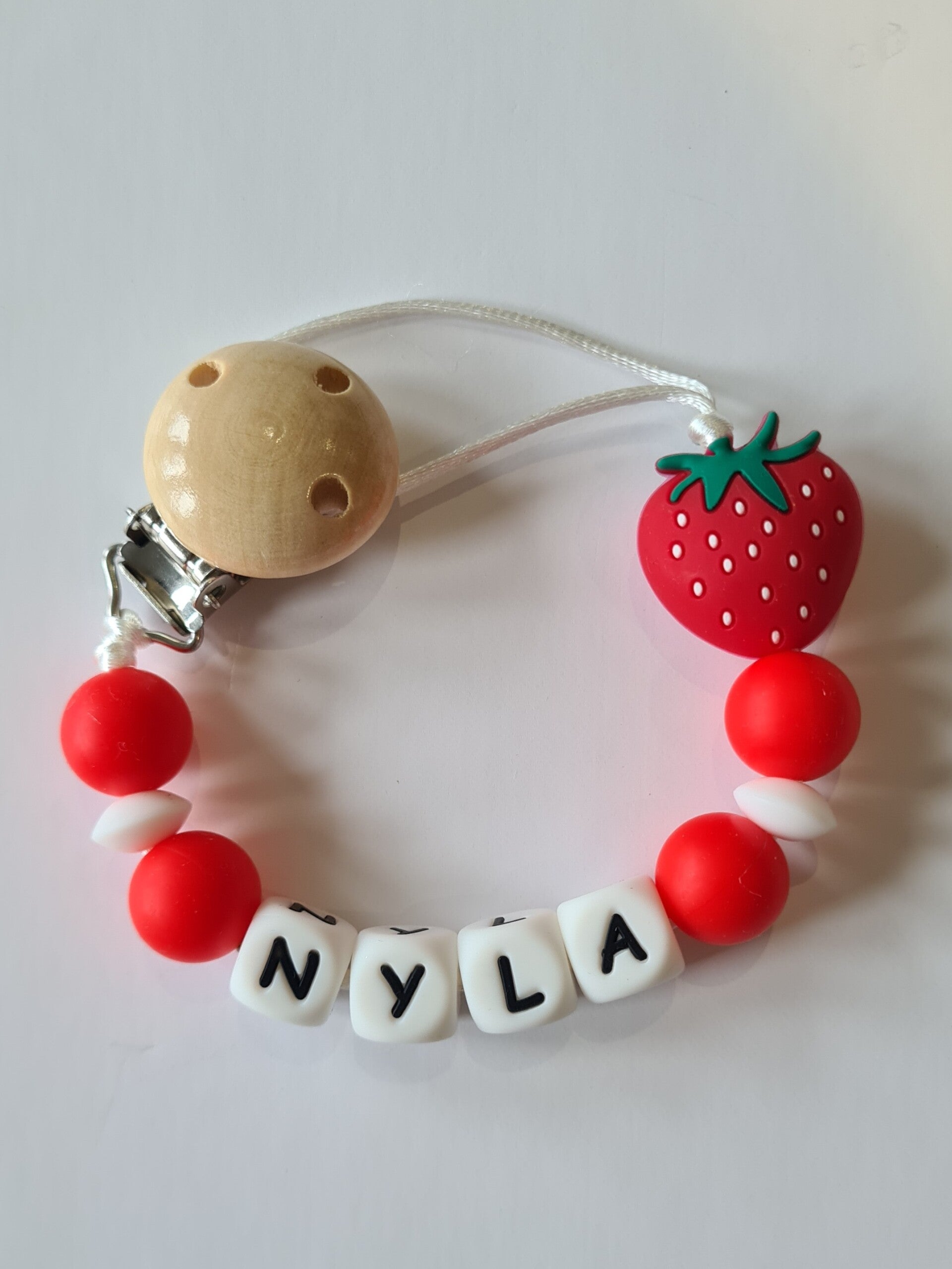 Maximum letters in personalisation is 10. To meet the safety standard, all dummy clips need to be around 24cm long and design will be altered if your name is longer. Extra beads will be added if name is shorter. No special characters.